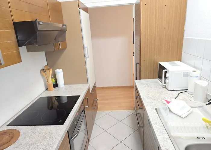 Eine komplette Küche mit einem Wasserkocher, einem Kühlschrank und einem Herd sorgt für einen komfortablen Aufenthalt. Die Gäste dieser Unterkunft können den Komfort von Ausstattung zur Kaffee- & Teezubereitung genießen. Zu den Restaurants Hotel Restaurant Bellevue und Da Luisa mit sind es ca. 10 Gehminuten. Die nächstgelegene Bushaltestelle Wangener-/Landhausstrasse befindet sich in unmittelbarer Nähe zu diesem 55 m^2 großen Apartment.